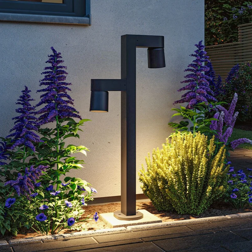 Kimu LED-vägbelysning, antracit, tvålampa, insektsvänlig ljusfärg Kimu LED-vägbelysning med tvålampa är perfekt för belysning av gångvägar, uppfarter, uteplatser och mycket mer. Extra varmvita LED-lampor (guldljus) har installerats i de två justerbara armaturhuvudena, som är placerade på olika höjd på framsidan och baksidan av ramen, och armaturen är utrustad med ett integrerat LED-drivdon för direktanslutning till 230 V. Armaturen är tillverkad av aluminium, har kapslingsklass IP44 och är motståndskraftig mot havsvatten, vilket gör att den även kan installeras i kustområden. Det varma ljuset från de inbyggda lysdioderna skapar en behaglig atmosfär runt huset och är särskilt insektsvänligt, eftersom det ligger utanför det synliga området för de flesta insekter så att de inte lockas av ljuset. Ljuset skyddar därför aktivt insekter utan att försumma fördelarna för människor.