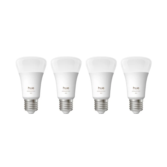 Dessa fyra smarta Philips Hue E27 LED-lampor kan användas i vanliga lampor med E27-uttag, så att de blir en del av den smarta inomhusbelysningen. Med ett stort spektrum från extra varmvit till dagsljus, 16 miljoner färger och dimbar finns det rätt ljus för praktiskt taget alla användningsområden. Lamporna kan antingen styras direkt via Bluetooth med en smartphone eller surfplatta eller integreras smart via ZigBee med den separat tillgängliga Bridge Pro, så att röststyrning, automatisering eller appkontroll är möjlig när du är på resande fot.