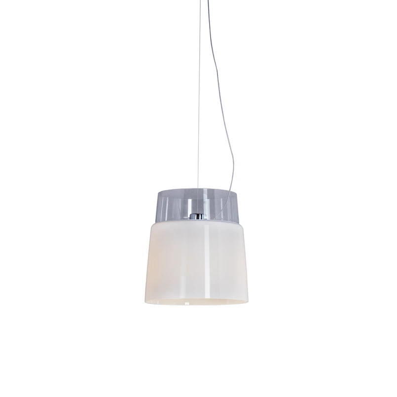Vestale S3 pendellampa med handblåst, tvåfärgad skärm Den handblåsta skärmen på Vestale S3 pendellampa ser ut som om den består av två delar som har sammanfogats. Den består dock bara av en del, som är tillverkad med italiensk glasblåsningsteknik och skapar mycket speciella effekter och en unik ljuseffekt tack vare sin tvåfärgade design. Vestale pendelarmatur är en tidlöst elegant ljuskälla som kan integreras i en mängd olika inredningar, oavsett om det gäller belysning av ett bord i vardagsrummet eller matsalen eller av köksbänken. Vestale S3 pendelarmatur är en armatur från den italienska tillverkaren Prandina. Kännetecknande för lamporna från Prandina är de munblåsta glasskärmarna, som tack vare sin förstklassiga kvalitet och design ger lamporna ett högt igenkänningsvärde. Prandina-Leuchten grundades 1982 av Sergio Prandina. Den kreativa företagsgrundaren har bland annat designat armaturserien Vestale. Prandina är ett italienskt varumärke inom ljusdesign med en kreativ filosofi som uppfyller ett antal viktiga kriterier: Enkelhet och formell precision, funktionalitet och hållbar kvalitet. Prandinas armaturer återspeglar dessa värden och förmedlar en definierad och igenkännbar identitet bortom stilkonventioner, mode och kortsiktiga trender.
