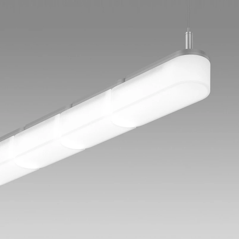 Flexibel i formen: Wiggle utanpåliggande LED-taklampa Med denna ljuslist, som kan monteras i taket eller på väggen, kan alla rum belysas effektivt och varierat. Det speciella med Wiggle är att den består av element som kan roteras mot varandra och monteras så att de antingen bildar en rak linje eller svepande kurvor. Ljuset avges direkt in i rummet. Den nödvändiga, externt DALI-dimbara driftdonet ingår redan i leveransen. Användning som pendelarmatur är möjlig med en separat tillgänglig upphängningssats (se tillbehör) - Sex monteringspunkter, sex fästklämmor - Slaghållfasthet: IK08