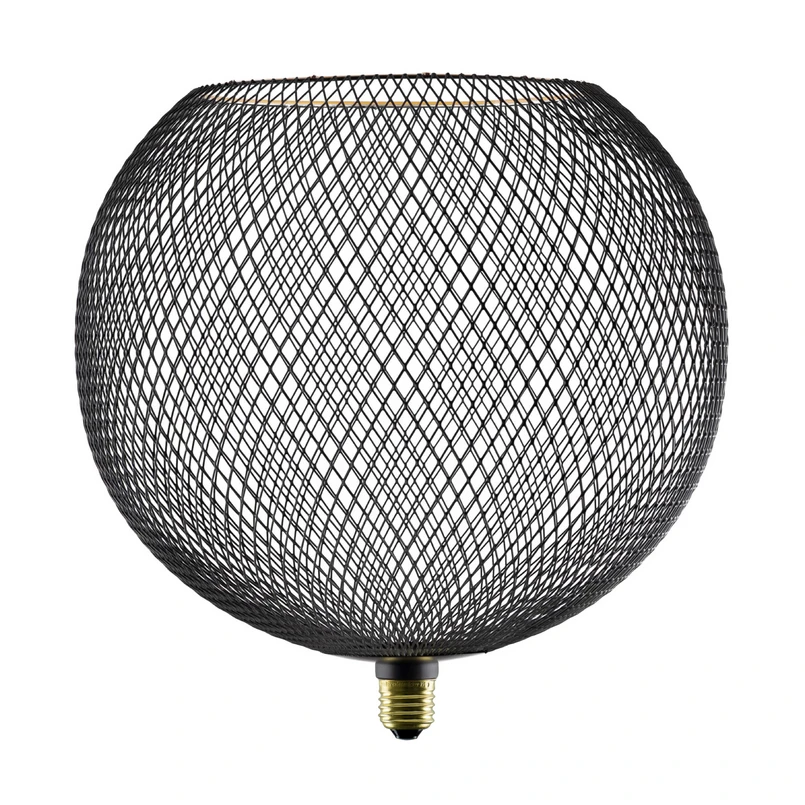 Den stora, svarta LED-globlampa Floating Cage består av svartbelagt metallnät och är speciellt avsedd för lampor utan skärm. Den kan dimmas med många vanliga dimmer (bakkantsdimmer, t.ex. ELTAKO, Jung, GIRA etc.). Med sin gallerstruktur, sin imponerande storlek och den patenterade soft-filament-tekniken med det tunna, spiralformade LED-filamentet skapar den ett fascinerande ljusspel som ger en charmig optisk effekt.