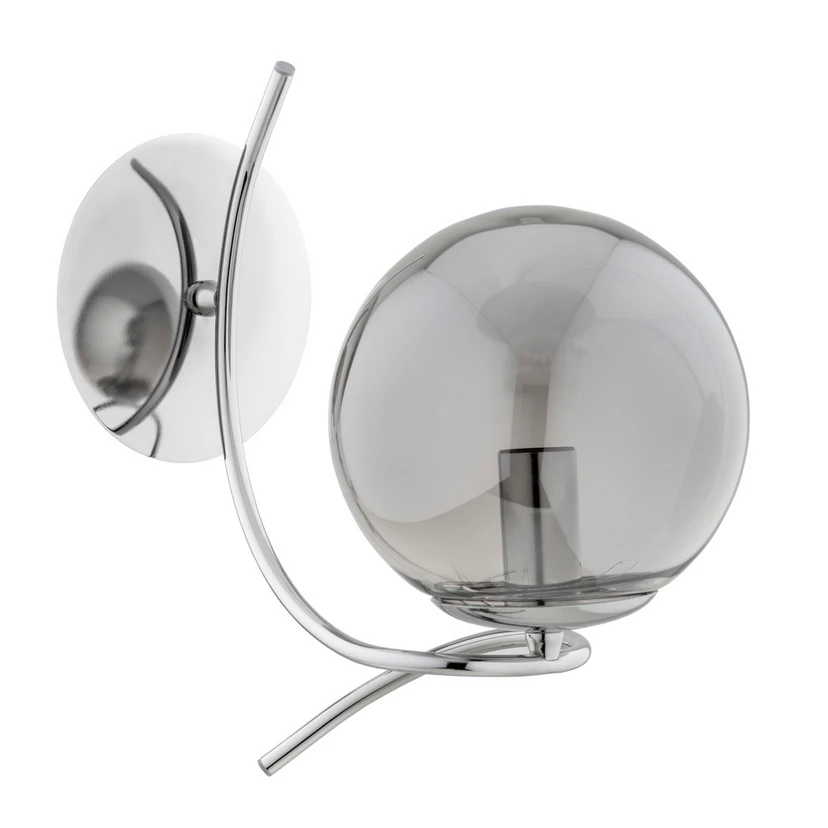 Sentia vägglampa, krom / rökgrå, glas, Ø 15 cm