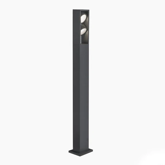 Tillverkad för att lysa upp mörka stigar med stil: LED-pollarmaturen Eskina Frame Double står för tillförlitlighet tack vare sitt robusta aluminiumhölje. I den övre delen av kroppen är två runda huvuden monterade i en utskärning så att de kan roteras vertikalt. De integrerade lysdioderna strålar alltså antingen framåt eller bakåt. En annan höjdpunkt är CCT-omkopplaren. Med denna strömbrytare kan ljusfärgen ändras mellan 3 000 K (varmvitt) och 4 000 K (universalvitt).