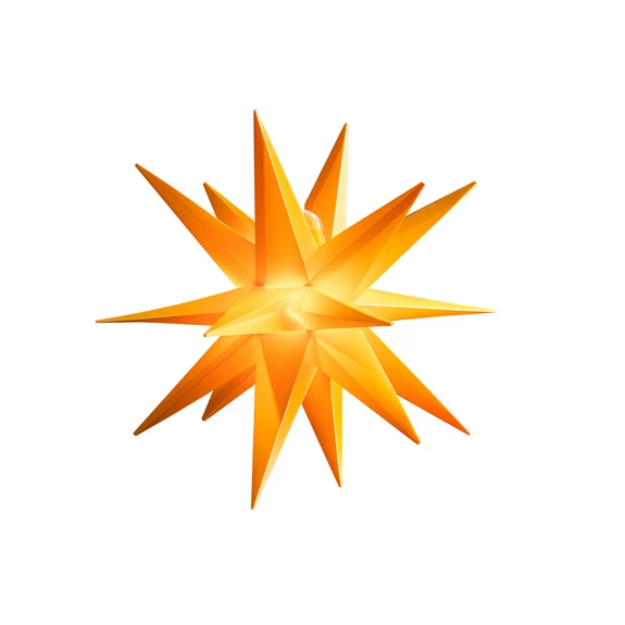 Den 18-taggiga LED-stjärnan är tillverkad av färgad plast. Tack vare den väderbeständiga och stänkskyddade konstruktionen är den tredimensionella vikbara stjärnan även lämplig för dekoration utomhus, t.ex. framför ett fönster. Utrustad med batterifack (inkl. krok för upphängning), transparent kabel och timer.