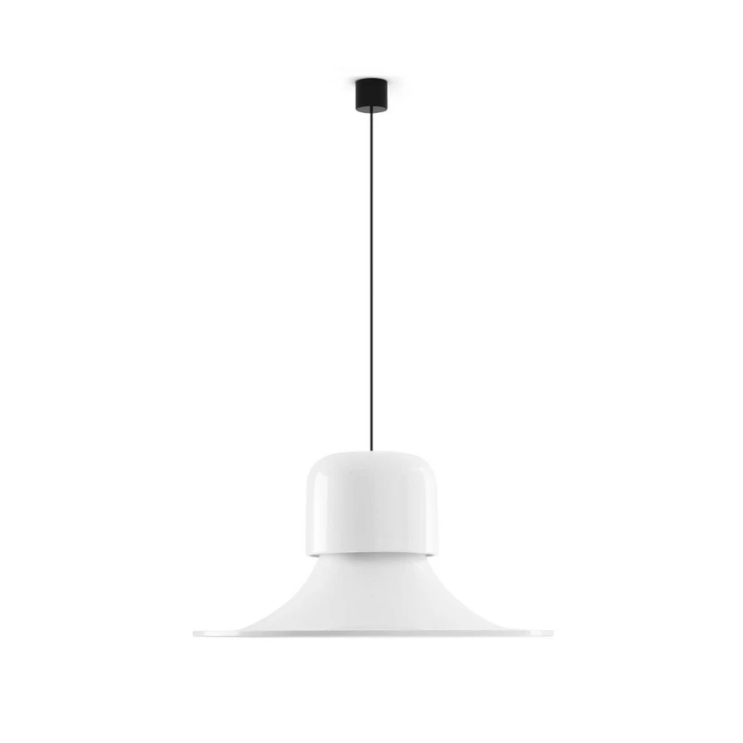 Med topLED-modul: Campana LED-pendelarmatur, 2 700 K, DALI-2 Push-DIM, Ra90Den ursprungliga designen av Campana LED-pendelarmaturen går tillbaka till 1969 och påminner om den popstil som fortfarande är på modet idag. Den nya LED-ljuskällan som är integrerad i den stora, utskjutande lampskärmen lyser upp omgivningen och skapar samtidigt en karakteristisk ljuskrona som glider över armaturens yttre yta.Armaturhuset är tillverkat av aluminium med en glansig beläggning. Den vita diffusorn inuti skärmen är tillverkad av PMMA-plast och säkerställer optimal ljusreflektion. Dessutom kan ljusets intensitet regleras externt via DALI-2 Push-Dim.Campana tillverkas i Italien av Stilnovo, ett företag som grundades i Milano 1946 och som också skapade designen för denna klassiker.