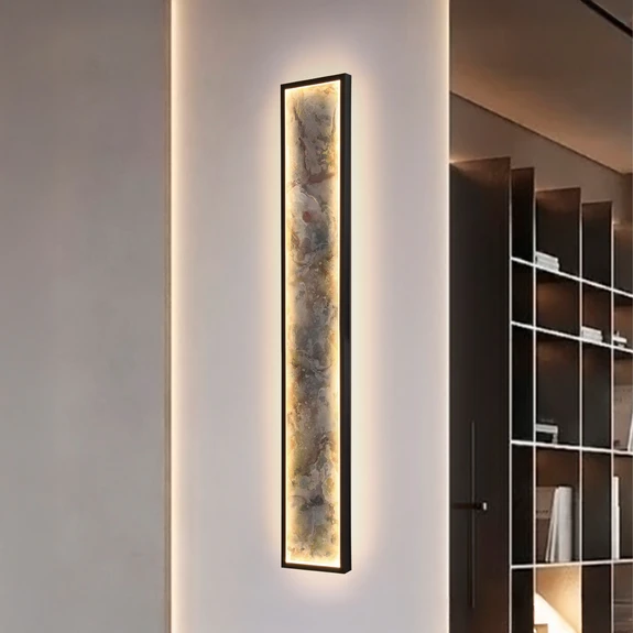 LED-vägglampa Stone med CCT-funktion för skräddarsydd ljusdesign LED-vägglampan Stone imponerar med sin moderna design och högkvalitativa finish i metall och akryl. I den långa metallramen sitter en flerfärgad kupa med skifferutseende. Med den integrerade CCT-funktionen kan färgtemperaturen ställas in flexibelt med ljusomkopplaren - från varmvitt till universalvitt till dagsljusvitt. Denna mångsidighet gör armaturen idealisk för användning i alla rum där olika ljusstämningar krävs. Den fast installerade LED-ljuskällan ger en energieffektiv belysning med en hög färgåtergivning på Ra 90, vilket gör att färgerna i rummet framstår som särskilt levande