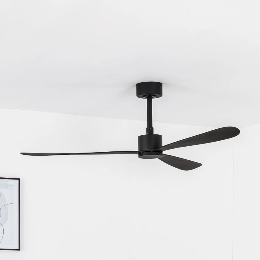 Takfläkt Amelia med tre blad, DC-motor och fjärrkontrollDesignen för takfläkten Amelia, som fascinerar med sin organiska, böjda form, kommer från Héctor Serrano. Takfläkten levereras inklusive en fjärrkontroll (utan batterier) med timer samt en 20 cm lång förlängningsstång, som kan användas som ett alternativ till den 10 cm långa förlängningsstången. För rum upp till 18 m².FunktionerInkluderar sommar- och vinterfunktion, omkopplingsbar på höljet. Med vinterfunktionen (lamellerna vänder då åt andra hållet) uppnås en homogen luftfördelning, vilket bidrar till att spara energi. 6 hastigheter samt 6 effektnivåer kan styras med fjärrkontroll. En timer är integrerad i fjärrkontrollen.Tekniska dataEffekt per hastighet:- 5 watt vid 69 rpm- 7 watt vid 99 rpm- 10 watt vid 123 rpm- 15 watt vid 143 rpm- 19 watt vid 162 rpm- 28 watt vid 189 rpm- Luftflöde: 153 m³
