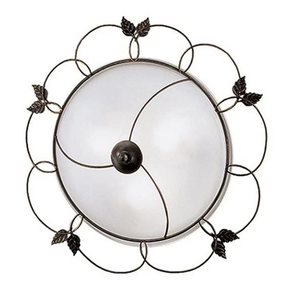 Stilfull taklampa med metalldekoration, vitt glas i alabaster-utseende