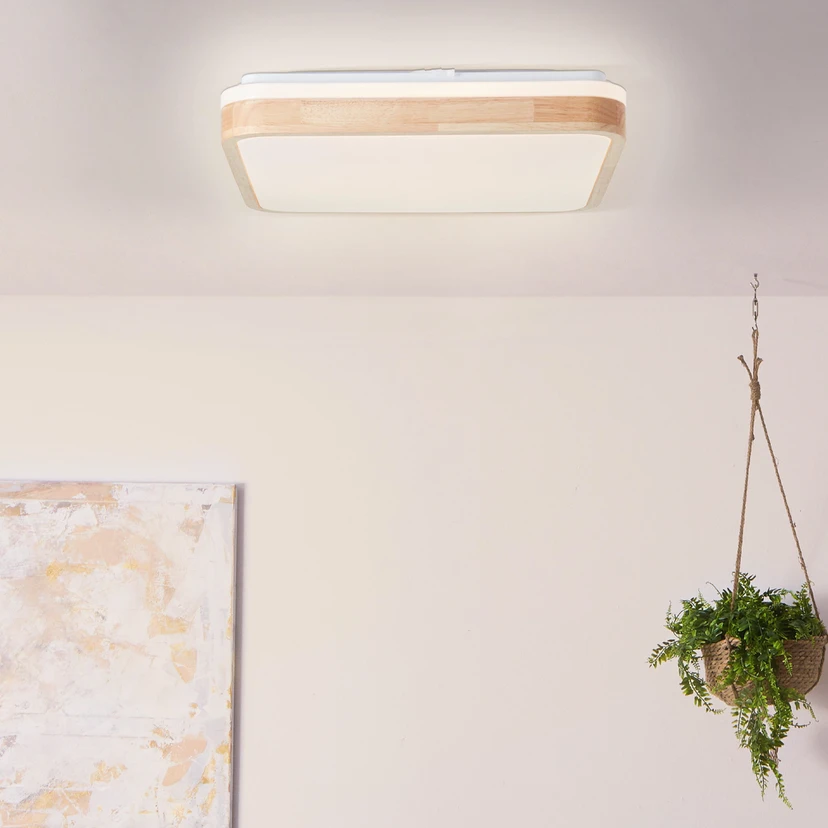 Taklampa Tumeo, LED, längd 40 cm, ljust trä, metall/trä