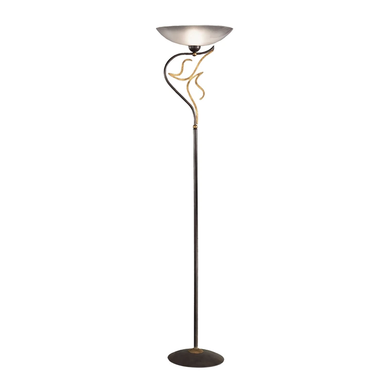 Uplight-golvlampa Amabile, rost guld med vitt glas