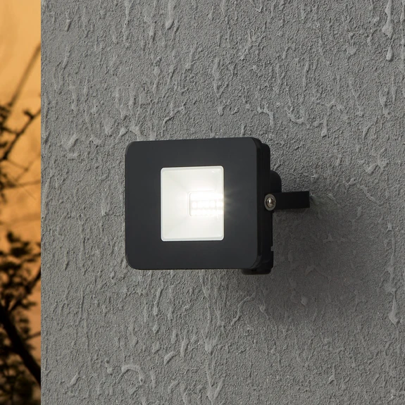 LED-strålkastare utomhus Faedo 3 i svart med monteringsfäste, IP65 En vägg, ett takutsprång eller ett hörn av en byggnad - LED-strålkastaren utomhus Faedo kan monteras var som helst tack vare det flexibla monteringsfästet för att belysa en stor yta på fastigheten. Med kapslingsklass IP65 är utomhusstrålkastaren dammtät och skyddad mot vattenstrålar och kan utan problem utsättas för väder och vind.
