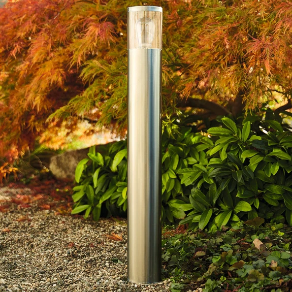 Den puristiska vägbelysningen Naxos är diskret och elegant med sin enkla design. Den passar perfekt i alla trädgårdar och utomhusmiljöer och ger tillräckligt med ljus och ljusstyrka runtom med sin transparenta diffusor i plast. Resten av väglampan Naxos är tillverkad av högkvalitativt stål. Lampan levereras utan glödlampa och med passande säkerhetsanslutningsbox.