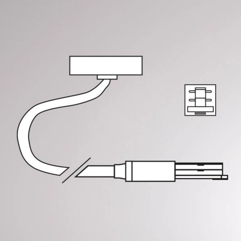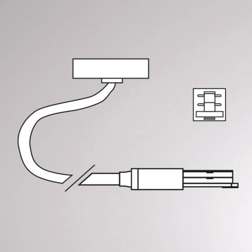 Slutanslutning med kåpa för Volare 2-fas skensystem Denna slutanslutning för Volare 2-fas skensystem är utrustad med en 2 m lång kabel och en kåpa. Tack vare kabeln är skenmatningen lämplig om man väljer en hängande position eller om takutloppet är bort från skenan - Kabeln kan kortas efter behov, 5 x 1,0 mm²