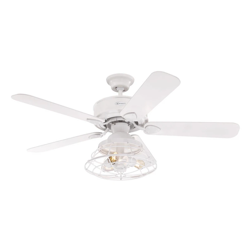 Vintage-inspirerad fläkt med rustik lampskärm i form av en bur
